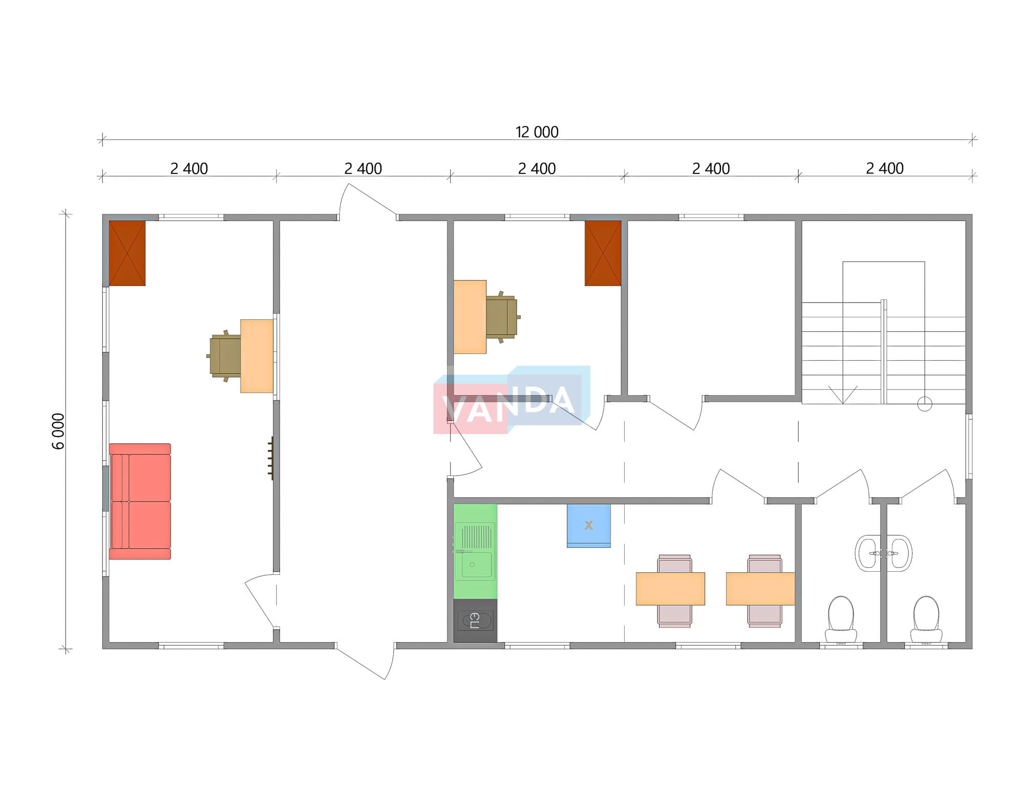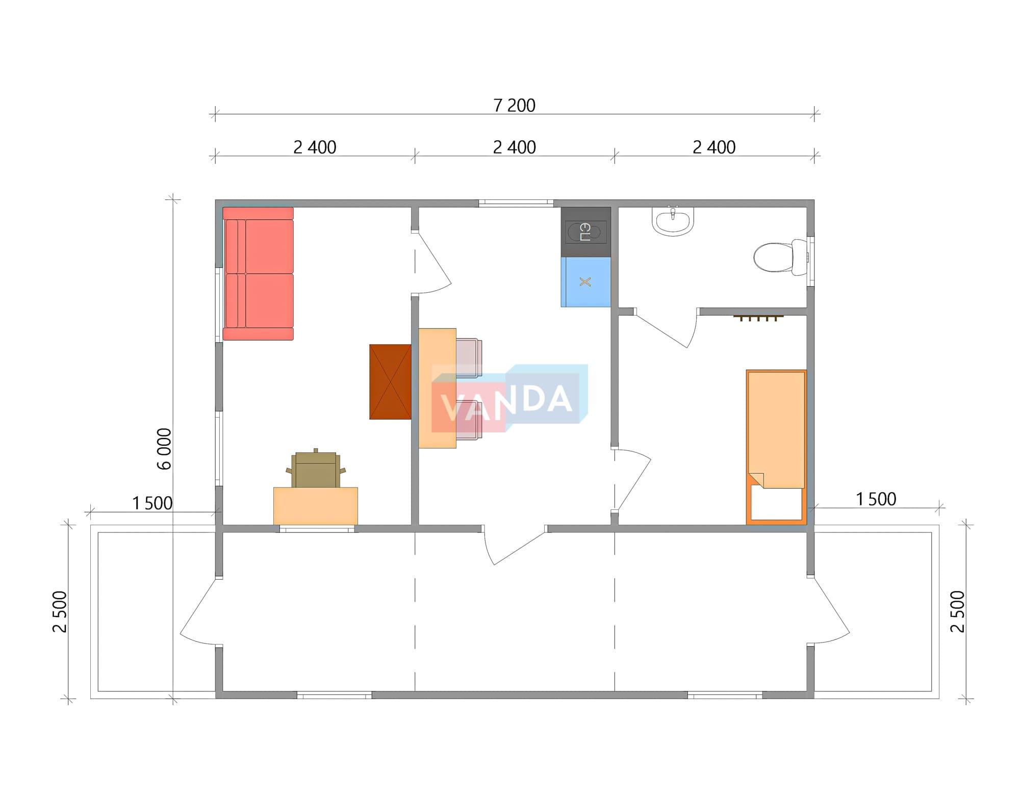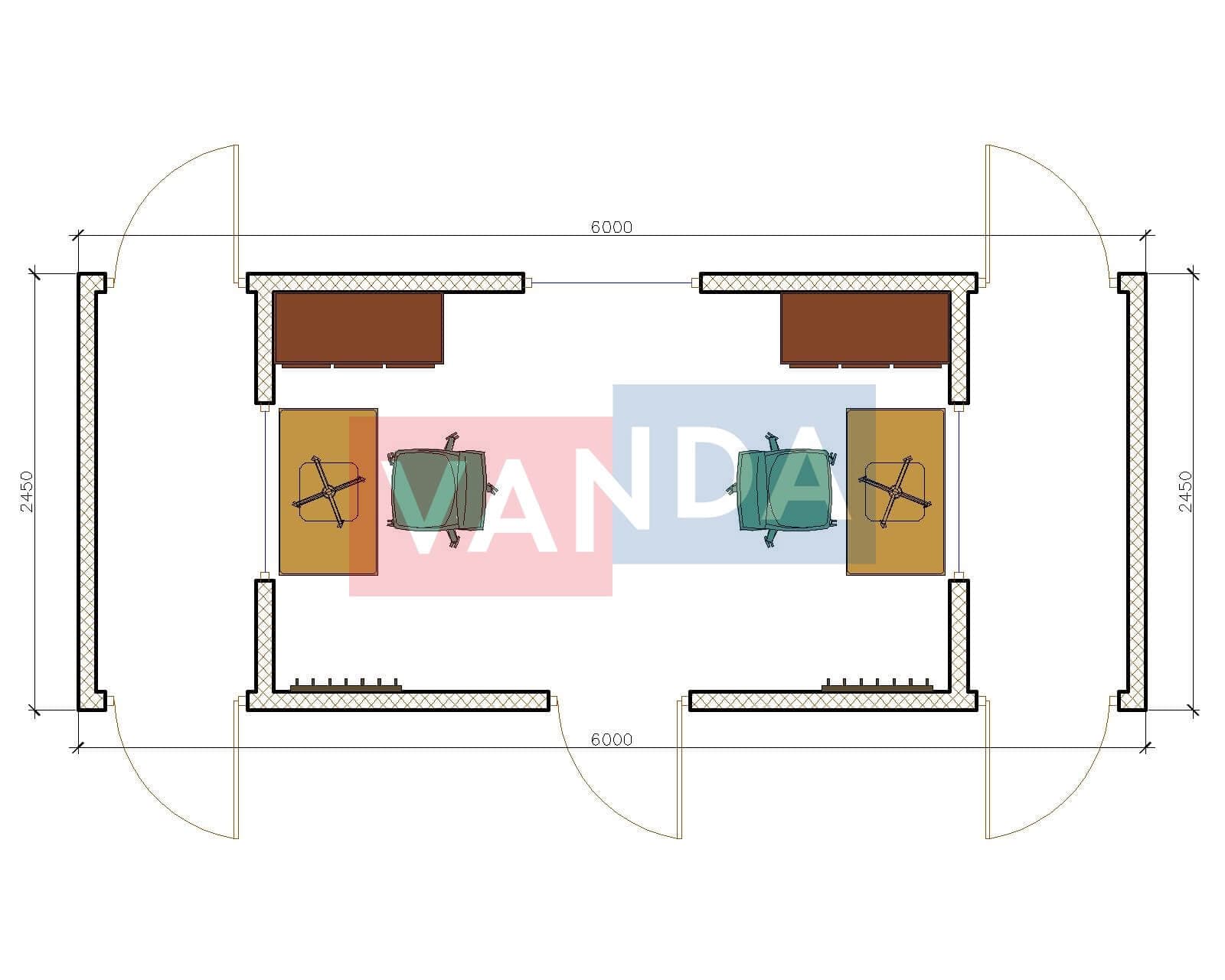 Модульная бытовка с плоской крышей 7.2x6.0 7.2x6.0 43.2 OSB 9 мм. Оцинкованный профлист 650 000 р. Уточняйте у менеджера
