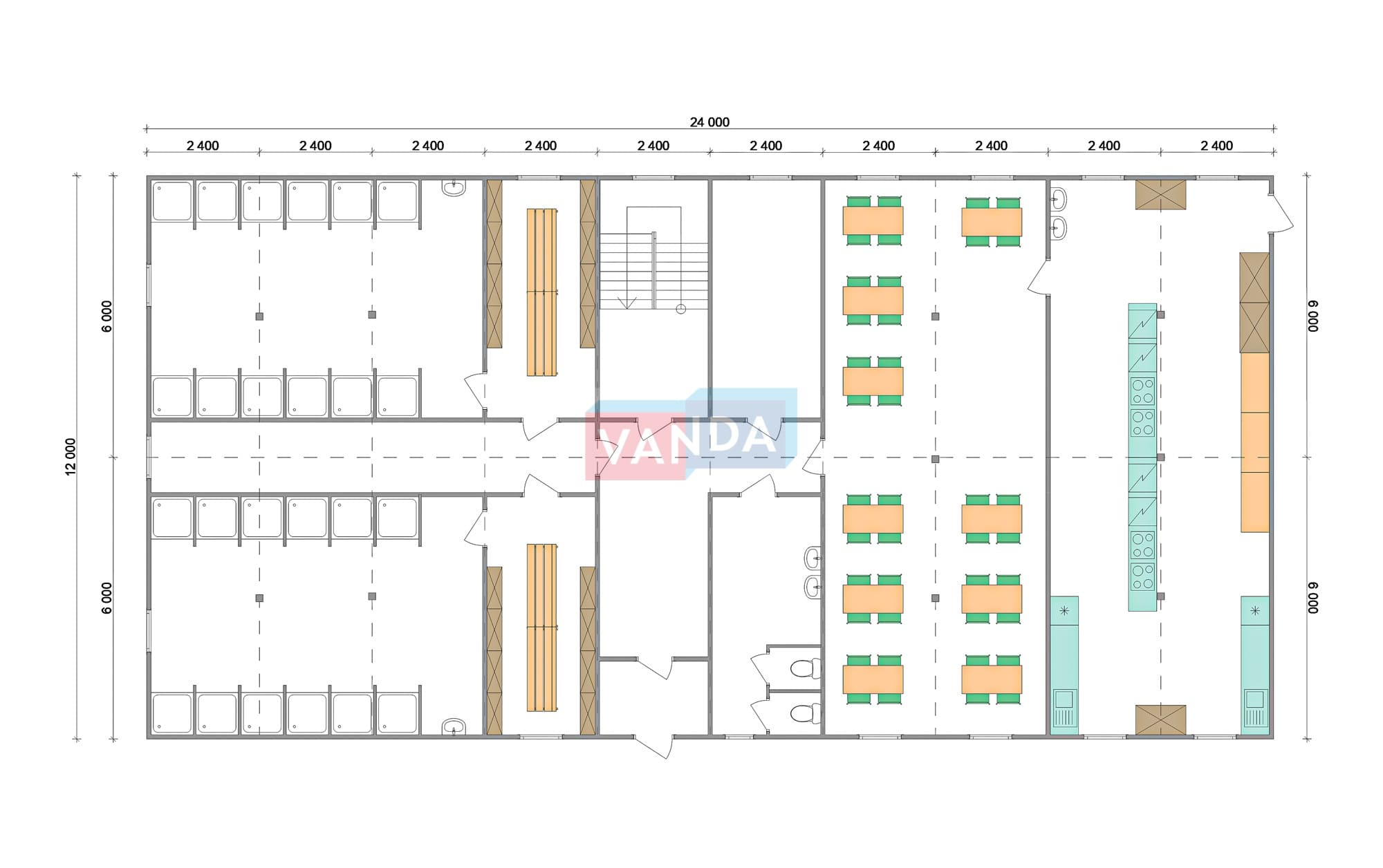 Проект вахтового посёлка 14.0х57,6 14x57.6 806.4 OSB 9 мм. Оцинкованный профлист 20 700 000 р. Уточняйте у менеджера