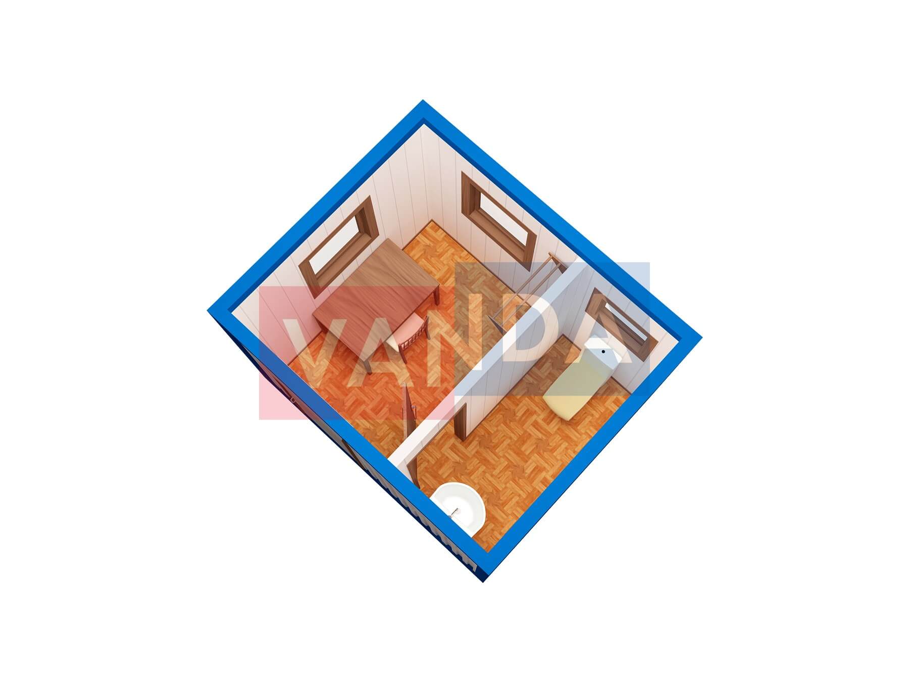 Модульная бытовка с плоской крышей 4.8х6.0 4.8х6.0 28.8 OSB 9 мм. Оцинкованный профлист 500 000 р. Уточняйте у менеджера